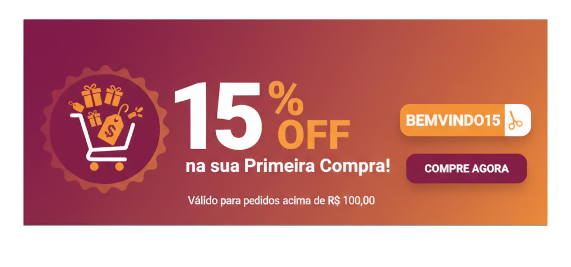 No final do check out, sendo a primeira compra, abrirá um campo para digitar o codigo do cupom informado no inicio destas instruções. Apos inserir as informações de primeira compra será deduzido automáticamente 15% no valor total dos produtos selecionados. Você poderá adicionar no mesmo carrinho os produtos que já estão com as indicações de promoção, porém só serão considerados os produtos que não estiverem na condição promocional.